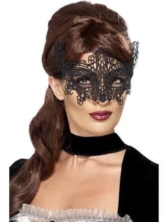 Perfect worn on its own for masquerade balls or completing your look with a costume, the Smiffys Embroidered Lace Filigree Swirl Eyemask in black is the ideal glamorous accessory
