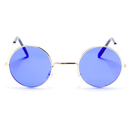 These 60's and 70's style glasses feature round gold frames with tinted blue lens and make a great addition to any John Lennon, Ozzy Osbourne or Britpop icon fancy dress costume.