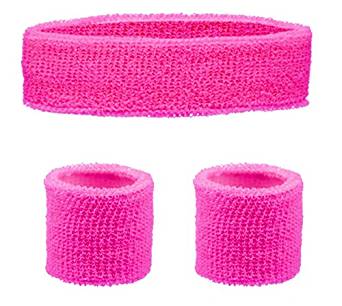 SWEATBAND & WRISTBANDS SET - NEON PINK 80S