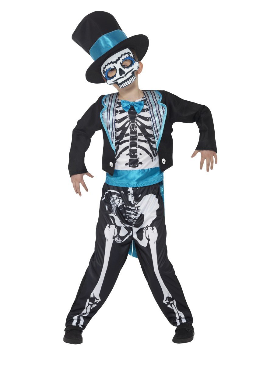 Day of the Dead Groom Costume, Black, with Mock Top, Trousers, Hat & MaskThis Children?s Day of the Dead Groom Costume is perfect for fancy dress parties, Halloween parties, and Day of the Dead themed events. This costume comes with a black mock top, trousers, hat and mask. Simply add shoes and the costumes complete!