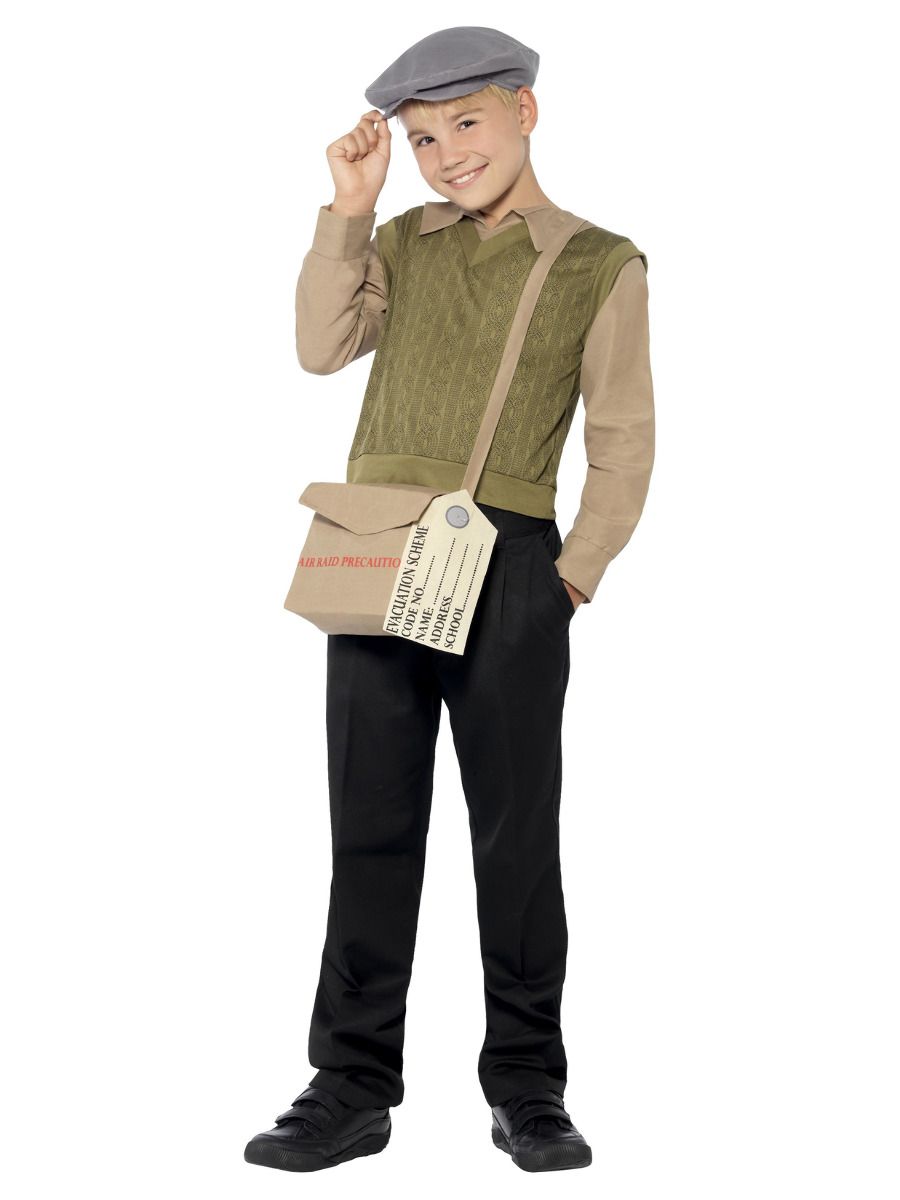 Evacuee Boy Kit, Green, with Jumper, Attached Mock Shirt, Hat, Bag & Tag