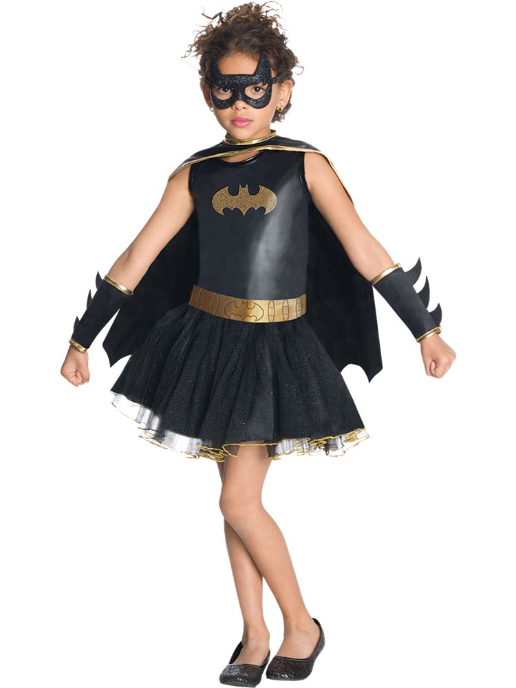 Why should boys get to have all the fun ? Batman isn't the only hero in Gotham City ! Become a mini hero in this adorable Batgirl costume and give Batman a run for his money ! This officially licensed DC Comic Batgirl Costume features a black shiny dress boasting a stretchy bodice with sparkling, gold Batman logo to front and velcro fastening to back along with a pretty attached tutu skirt.