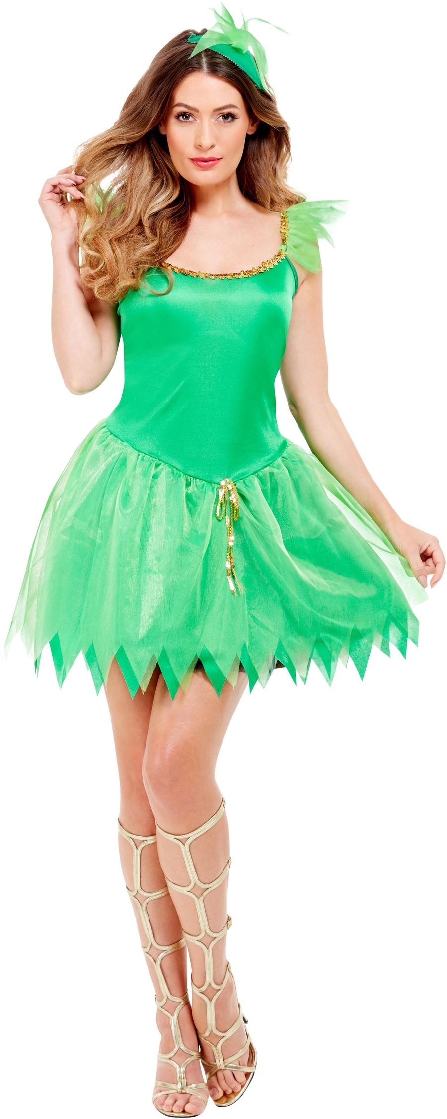 Woodland Fairy Costume, Green, with Dress, Headpiece and Wings