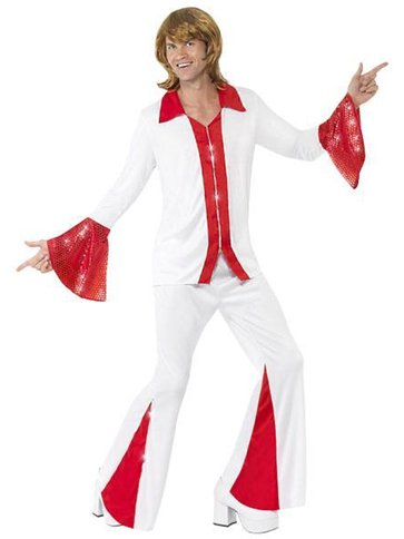 Super Trooper Male Costume, White & Red, Shirt and Trousers