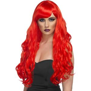 Long red curly wig with sweeping fringe